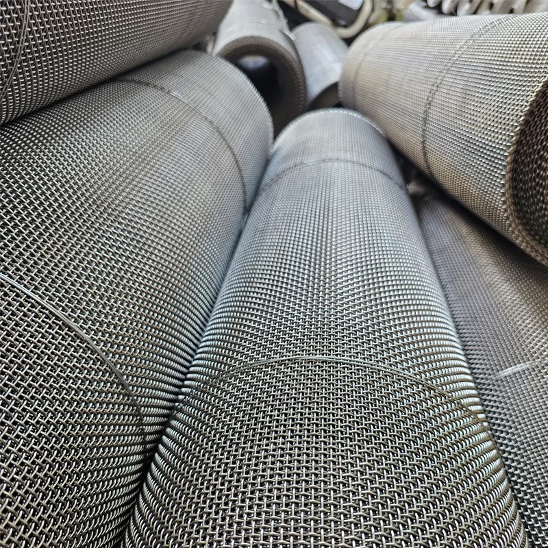 The manufacturing processes include plain weaves, twills, and dutch weaves, with customizable aperture sizes (range: 20 to 200 mesh).